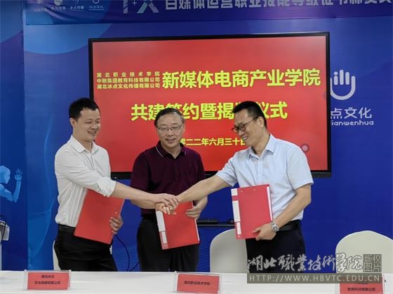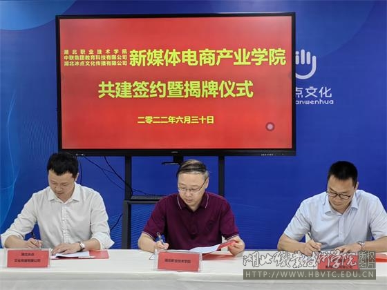 6月30日,新媒体电商产业学院(以下简称产业学院)签约暨揭牌仪式在南校区天工楼顺利举行,产业学院由学校与中联集团教育科技有限公司、湖北冰点文化传播有限公司共同建设。学校副校长胡昌杰,中联集团教育科技有限公司副总裁冯学平,湖北冰点文化传播有限公司总经理熊传兵及学校相关职能部门负责同志、kaiyun云开登录入口师生代表等出席,揭牌仪式由kaiyun云开登录入口院长徐斌华主持。