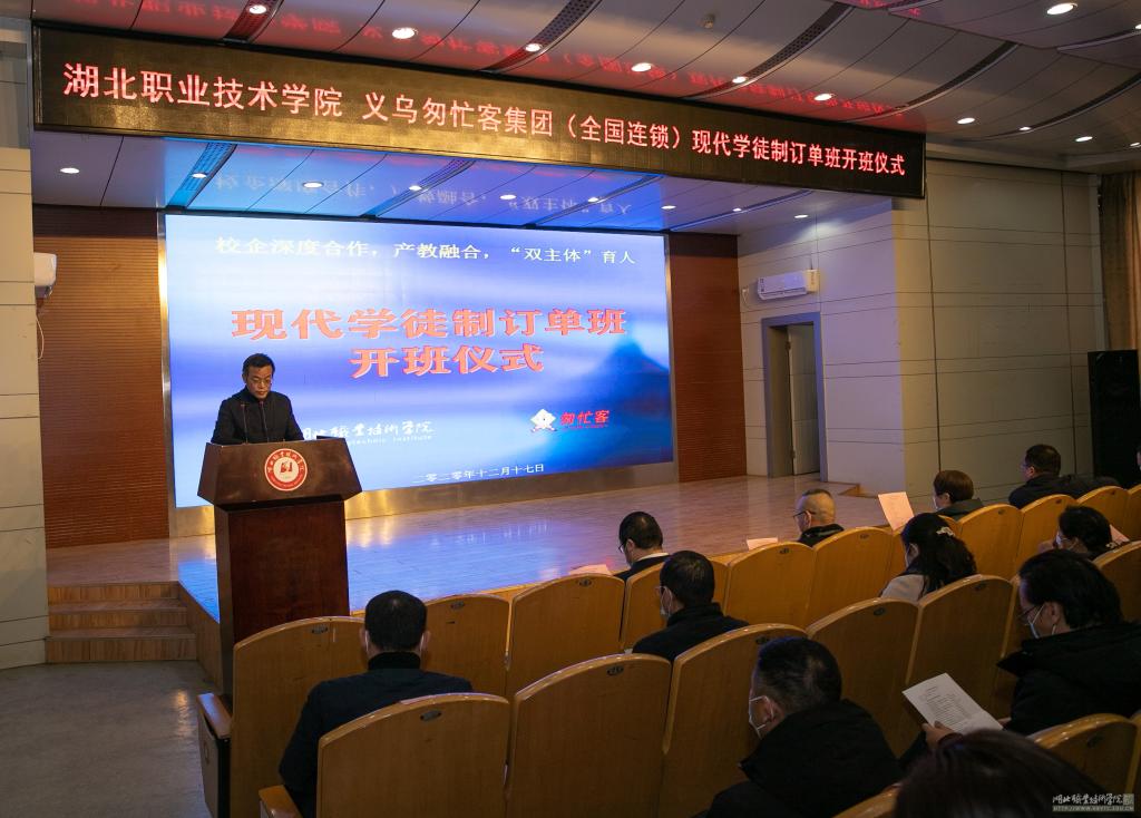 12月17日下午,学校与义乌匆忙客集团“现代学徒制”订单班开班仪式在文博馆学术报告厅顺利举行。浙江义乌匆忙客集团管理团队盛等财副总经理一行6人,学校校长朱虹、副校长梅重、相关职能处室负责人,kaiyun云开登录入口、旅游与酒店管理学院师生代表等参加了相关活动。学校教务处处长黄享苟主持开班仪式。