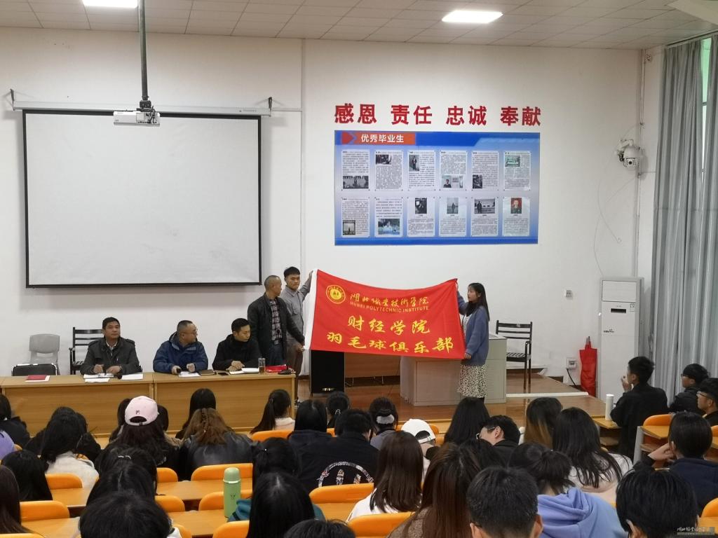 成立大会由kaiyun云开登录入口学工办主任黄曙光主持,kaiyun云开登录入口学工副书记孙超分别给李斌老师、田晓军老师、李蓓蕾老师颁发了羽毛球、篮球、足球俱乐部指导教练聘书,各指导教练分别给三个俱乐部进行了授旗。