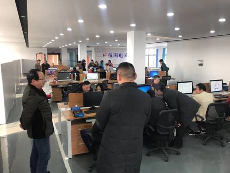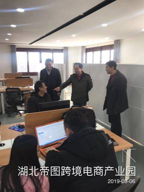 三月六日下午,kaiyun云开登录入口院长卢珍宏、副院长喻靖文、管理教研室主任潘艾华等一行考察湖北帝图跨境电商产业园。卢珍宏一行听取了该园负责人姚总关于产业园建设、发展情况的介绍,双方探讨了跨境电商人才培养和双方合作事宜。卢珍宏一行还看望了在该园开展实习实训的学生,观摩了同学们的实操过程。