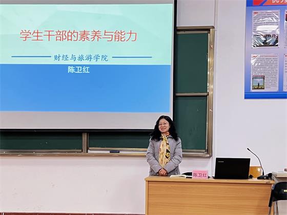 陏后,学工副院长陈卫红做了题为“学生干部的素养与能力”的培训报告。报告从学生干部应具备的基本素质、个人修养、工作与学习的关系、学生干部的执行力等四个方面展开。陈院长强调学生干部一定要立场坚定、是非分明,率先垂范,树立全心全意为同学服务的思想,并以自己的模范行为推动工作的开展,带领同学们努力学习,全面发展。