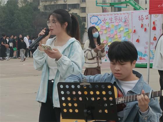 本次活动主要分为女生风采展、游戏互动、爱心签语三个环节。陈依蓉、苗雪妍、范羽佳等11名同学带来的舞蹈《星火》拉开了活动序幕,随后曹悦悦、段紫璇、陈秀云等合唱了歌曲《第一天》,徐小庆吉他弹唱《这世界有那么多人》,麦合丽娅·海如拉以优美的新疆舞展现了民族学生的靓丽风采......25个精彩纷呈的才艺表演,尽显女生们美丽自信、活泼可爱的蓬勃朝气。