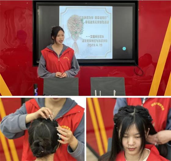 活动中,志愿者们同居民详细讲解了花样编发小知识,展示了几款发型的编制方法。在志愿们的耐心指导下,居民们相互交流、相互配合、各自成为彼此的模特,尝试各种各样的发型编制。活动现场一片其乐融融。