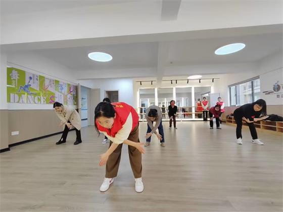 随着音乐的开始,社区居民在专业老师的带领下踏着轻松的节拍伸伸胳膊、抬抬腿、弯弯腰,不仅缓解了紧张繁忙的工作压力和疲劳的精神状态,达到快乐工作、健康生活的目的,而且提高了社区生活的幸福指数。