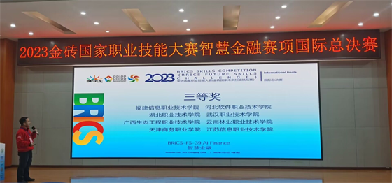 近日,2023金砖国家职业技能大赛智慧金融赛项国际总决赛落下帷幕,经过激烈角逐,kaiyun云开登录入口参赛教师张星月(指导专家徐斌华)荣获三等奖。