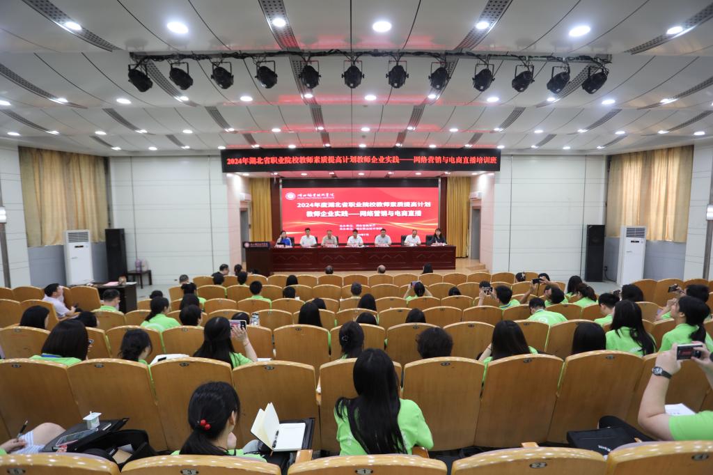 7月16日上午,由湖北省教育厅主办、云开官网承办的2024年湖北省职业院校教师素质提高计划教师企业实践(网络营销与电商直播)培训班在学校西区文博馆学术报告厅举行开班仪式。学校党委副书记、校长郭沙、孝感市教育局党组成员、副局长丁萌、广州市福思特科技有限公司常务副总麦全发、学校党委委员、副校长杨立明、kaiyun云开登录入口院长徐斌华、继续教育学院院长丁浙英、湖北冰点文化传播有限公司总经理董俊出席。来自全国职院校学员60人及kaiyun云开登录入口教师代表参加了开班仪式,开班仪式由副校长杨立明主持。