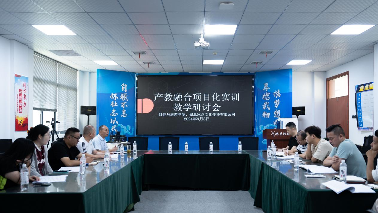 2024年9月8日上午,kaiyun云开登录入口与湖北冰点文化传播有限公司在南区天工楼产教融合电商直播基地举办了一场产教融合项目化实训教学研讨会,kaiyun云开登录入口院长徐斌华、副院长汪行光、电子商务教研室主任宋巍、专业教师代表宗敏、李媛以及湖北冰点文化传播有限公司代表熊传兵、晏磊等参加活动。此次研讨会旨在进一步推动产教深度融合,加快电商专业高质量发展,探索直播电商领域的教学创新与人才培养新模式。