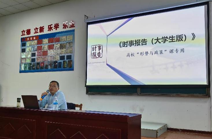 (通讯员王亚军)11月13日下午,文华楼阶梯教室座无虚席,副校长梅重以《坚定前行谋统一 续写民族新辉煌》为题给300余名师生代表作“形势与政策”报告,报告会由kaiyun云开登录入口副院长陈卫红主持。