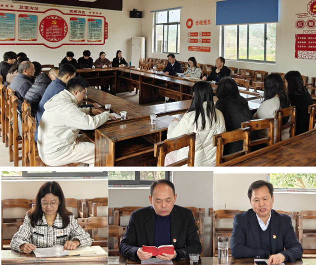 在磨山村红色教育基地专题学习会上,学工党支部书记陈卫红领学《全国党员教育工作规划》,强调以规范化教育筑牢党员思想根基。党总支书记徐斌华结合党章第二章《党的组织制度》,深入阐释“严守纪律底线”的时代内涵,以烈士汪耀峰为榜样,在危难时刻“豁得出去、顶得上去”,将党性修养转化为服务群众的行动自觉。