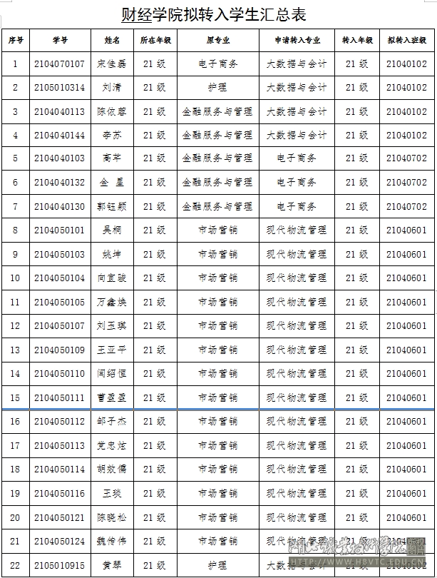 根据《普通高等学校学生管理规定》(教育部令第41号)、《省教育厅关于普通高校转专业有关工作的通知》(鄂教学[2014]4号)和《kaiyun云开登录入口学生管理规定》(鄂职院发[2017]28号)以及《关于印发< kaiyun云开登录入口学生转专业管理办法(试行)>的通知》(鄂职院发[2019]21号)的相关规定,经学生本人申请、转出院(系)审批、kaiyun云开登录入口同意,现就有意向转入我院学生予以公示。后期报教务处审批合格后方可正式转入。公示期间如有异议,请与kaiyun云开登录入口联系,以单位名义反映的,须加盖本单位公章;以个人名义反映的,应署真实姓名和联系电话。我们将对反映的问题进行调查核实,并对反映人保密。
