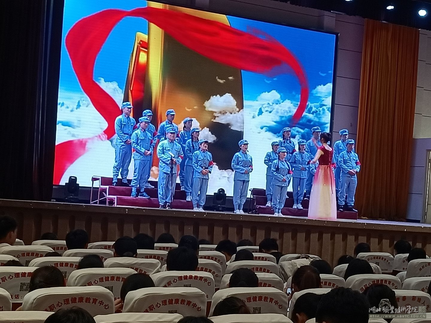 一村多19级704、705班带来的大合唱《没有共产党就没有新中国》,通过富有时代感的服装与朗诵,凸显出歌曲中心的真意——没有共产党就没有新中国,让人回味无穷。